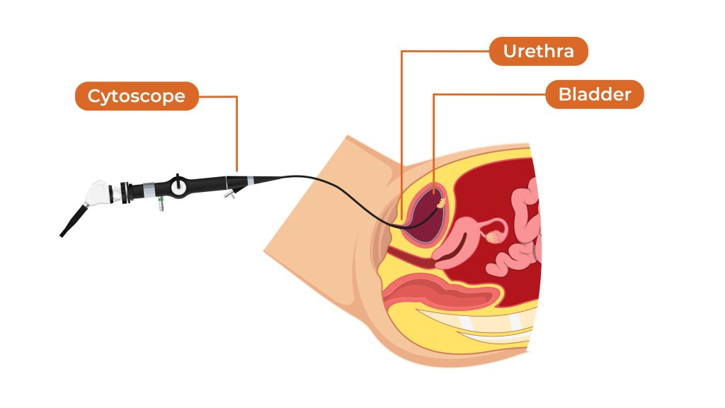 Diagnosis typically begins with urine tests (cytology, tumor markers), followed by cystoscopy — a key procedure where a thin, lighted scope is inserted through the urethra to directly visualize the bladder interior and identify tumors.