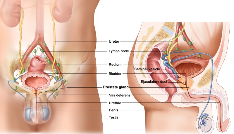 Here are clear anatomical illustrations of the prostate gland in the male urinary and reproductive system: